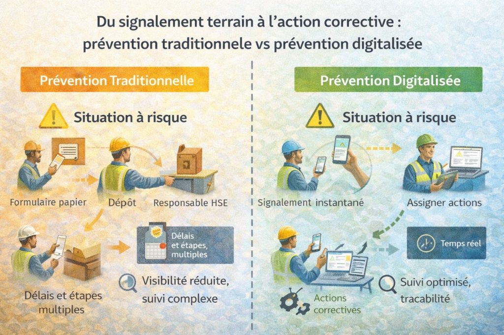 Une plateforme web et mobile centralisant 5 outils essentiels à la gestion de la prévention et de la qualité pour toute organisation et qui encourage une culture sécurité proactive et améliore la qualité opérationnelle. Instant Observation : pour remonter les problèmes et non-conformités rencontrés ou les bonnes pratiques. ToolBox Meeting : pour augmenter le niveau d’alerte ou communiquer sur tout évènement pertinent. Audits & Inspections : pour ne plus rater ses objectifs en termes d’inspections et d’audits journaliers, hebdomadaires ou mensuels. LMRA : pour une dernière analyse des risques avant de débuter une tâche et trouver des solutions à chaque problème rencontré. Competency Matrix : pour avoir sous la main ses qualifications / habilitations et brevets et des notifications de rappel avant expiration.