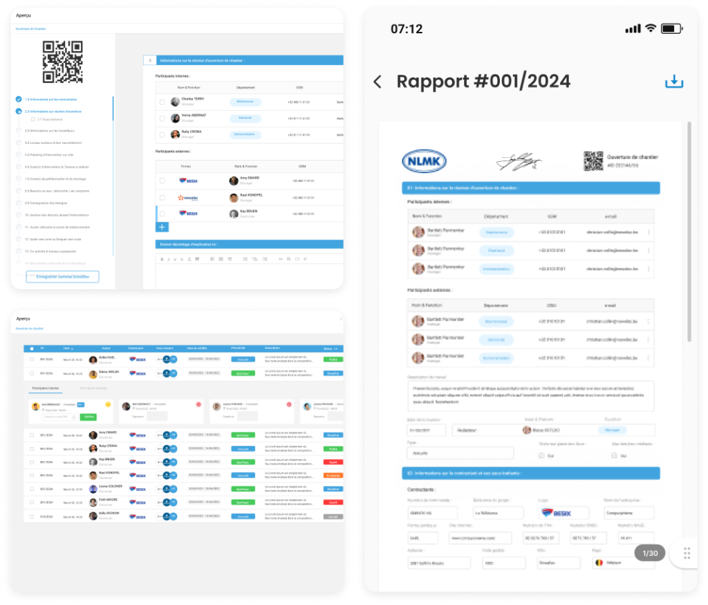 Une plateforme web et mobile centralisant 5 outils essentiels à la gestion de la prévention et de la qualité pour toute organisation et qui encourage une culture sécurité proactive et améliore la qualité opérationnelle. Instant Observation : pour remonter les problèmes et non-conformités rencontrés ou les bonnes pratiques. ToolBox Meeting : pour augmenter le niveau d’alerte ou communiquer sur tout évènement pertinent. Audits & Inspections : pour ne plus rater ses objectifs en termes d’inspections et d’audits journaliers, hebdomadaires ou mensuels. LMRA : pour une dernière analyse des risques avant de débuter une tâche et trouver des solutions à chaque problème rencontré. Competency Matrix : pour avoir sous la main ses qualifications / habilitations et brevets et des notifications de rappel avant expiration.