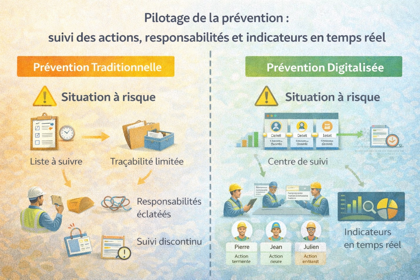 Une prévention efficace suppose que les actions ne restent pas théoriques. La traçabilité des décisions, la responsabilité claire des acteurs et la clôture effective des actions deviennent essentielles. Le numérique permet un suivi continu, visible par tous, et renforce la crédibilité des démarches de sécurité auprès des équipes comme du management.
